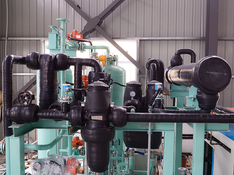 儲油罐回收裝置的冷凝法,是利用烴類物質(zhì)在不同溫度下的蒸汽壓差異,通過適宜溫度范圍逐步降溫的形式,使釋放的大部分油氣蒸汽壓達(dá)到過飽和狀態(tài),從而使過飽和油氣冷凝析出形成液態(tài)汽油的回收油氣方法。缺點是冷卻溫度越低,汽油蒸發(fā)的回收率越高,但在冷卻工藝中要消耗很大的能源。