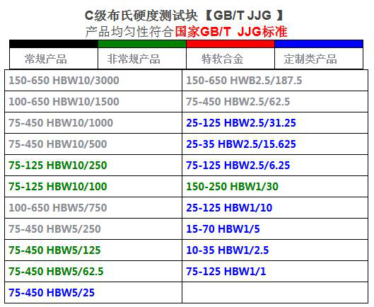 國(guó)家標(biāo)準(zhǔn)(GB231-84)規(guī)定布氏硬度試驗(yàn)時(shí),常用的0.102F/D的比例為30、10、2.5三種,根據(jù)金屬材料的種類、試樣硬度范圍和厚度的不同,按下表(布氏硬度試驗(yàn)規(guī)范)選擇試驗(yàn)壓頭(鋼頭)的直徑D、試驗(yàn)力F及保持時(shí)間。