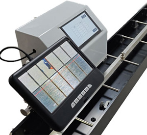 測(cè)量滑車:采用高精度位移傳感器測(cè)量數(shù)據(jù),觸摸顯示屏顯示測(cè)量讀數(shù),含7寸高清屏的電子顯微鏡,放大顯示刻線,放大倍數(shù)可調(diào)節(jié)。測(cè)量車上含有位移模組,可微調(diào)電子顯微鏡鏡頭的上下,前后位置,便于清晰顯示被檢尺線紋讀數(shù)。
