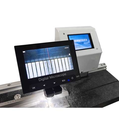 PTTC-GZ3型數(shù)顯式鋼直尺檢定裝置是由我司自主研發(fā)的,嚴格按照JJG1-1999《鋼直尺》計量檢定規(guī)程要求設計制作的。該檢定臺臺面采用優(yōu)質(zhì)花崗巖作為工作平臺,平臺工作平面按照 0級平尺要求制作。在主工作臺與可升降輔助工作臺上方,設計了內(nèi)含高精度位移傳感器的數(shù)顯小車和放大倍數(shù)1000倍的電子顯微鏡,不僅可以使測量數(shù)據(jù)更加精準直觀,使用也更方便。