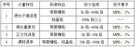 儀器在校準(zhǔn)過程中需要考慮的環(huán)境條件包括溫度:(20±5)℃,濕度:≤70%RH,其中,實驗室震動和電磁輻射應(yīng)不影響測量結(jié)果。而儀器的校準(zhǔn)項目所采用的標(biāo)準(zhǔn)樣品是周期柵格、硅晶格等,可根據(jù)計量特性、儀器測量范圍和實際使用情況選用相適應(yīng)的標(biāo)準(zhǔn)樣品。