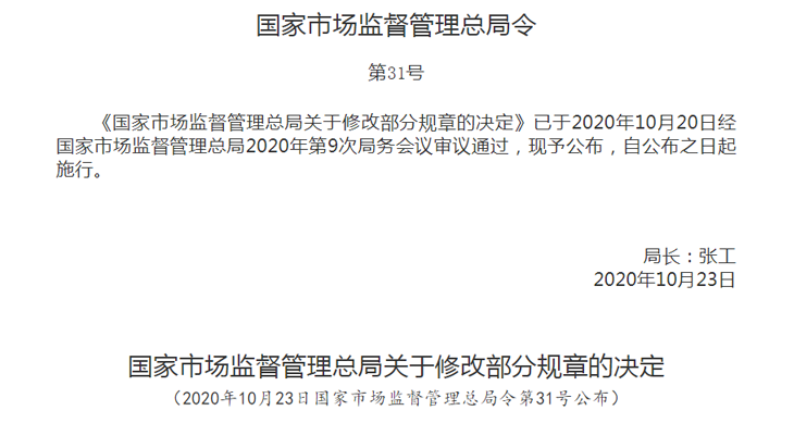 為了全面落實黨的十九屆三中全會審議通過的《中共中央關(guān)于深化黨和國家機(jī)構(gòu)改革的決定》《深化黨和國家機(jī)構(gòu)改革方案》和十三屆全國人大一次會議批準(zhǔn)的《國務(wù)院機(jī)構(gòu)改革方案》,確保行政機(jī)關(guān)依法履行職責(zé),進(jìn)一步推進(jìn)簡政放權(quán)、放管結(jié)合、優(yōu)化服務(wù)改革,市場監(jiān)管總局決定對30件部門規(guī)章的部分條款予以修改。