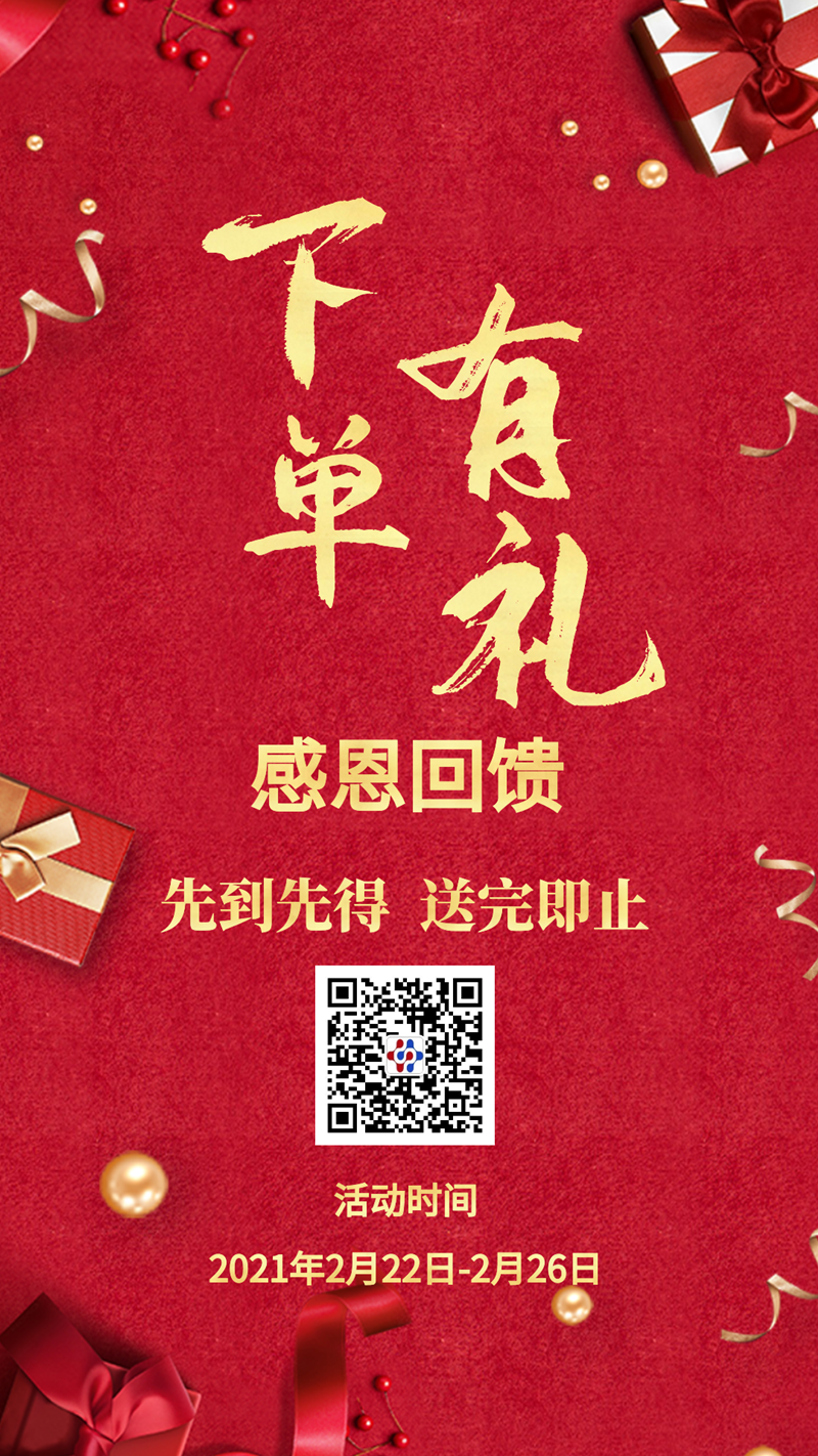 此次推出的“下單即送神秘禮品”活動,將于2021年2月22日至2月26日進(jìn)行,歡迎廣大客戶積極參與!