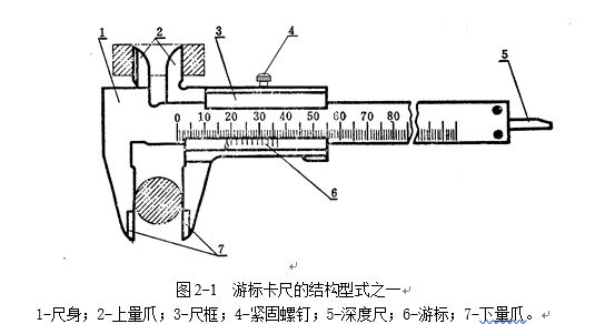 (2)測量范圍為0~200mm和0~300mm的游標卡尺,可制成帶有內外測量面的下量爪和帶有刀口形的上量爪的型式,如圖2―2。
