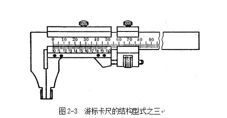 (3)測量范圍為0~200mm和0~300mm的游標卡尺,也可制成只帶有內外測量面的下量爪的型式,如圖2-3。而測量范圍大于300mm的游標卡尺,只制成這種僅帶有下量爪的型式。