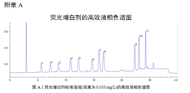 本方法規(guī)定了食用菌、大米、小麥粉和小麥粉制品、淀粉和淀粉制品中11種二苯乙烯類陰離子型熒光增白劑的高效液相色譜測定方法。11種熒光增白劑包括熒光增白劑24、熒光增白劑71、熒光增白劑85、熒光增白劑90、熒光增白劑113、熒光增白劑210、熒光增白劑220、熒光增白劑264、熒光增白劑353、熒光增白劑357、熒光增白劑5bm。