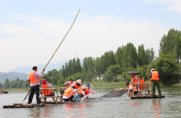乘船而下,同事們也開(kāi)始了激勵(lì)的搏擊,任清爽的溪水批頭蓋臉而來(lái),讓人忘卻夏日的炎熱。
