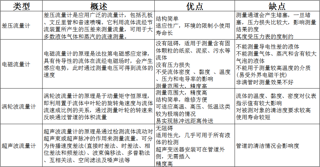 普天同創(chuàng)為大家整理四種常見流量計的優(yōu)缺點,供參考: