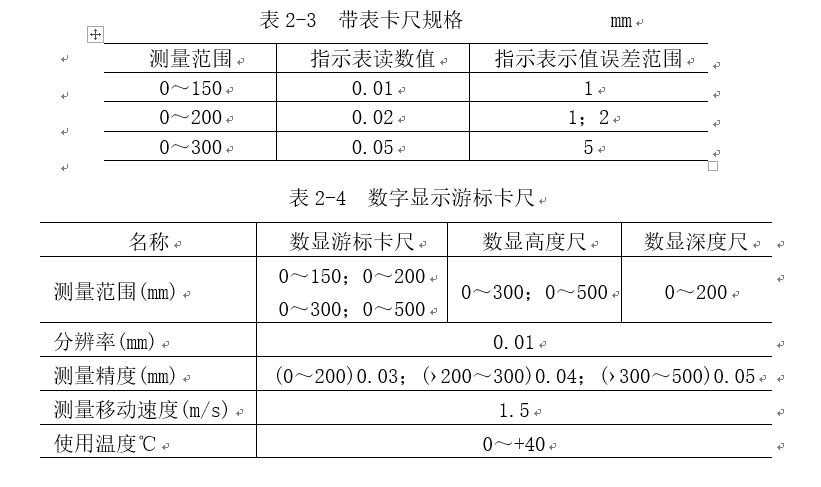 帶表卡尺的規(guī)格見表2-3。數字顯示游標卡尺的規(guī)格見表2-4。