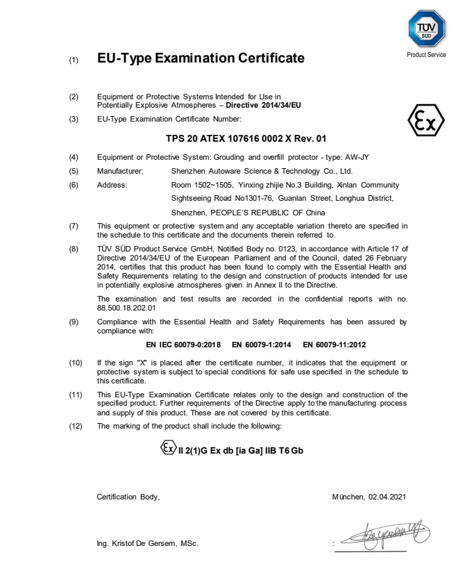 | 防爆證號 | TPS 20 ATEX 107616 0002 X |