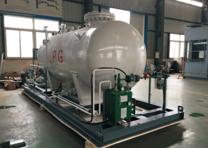根據(jù)客戶需求,我公司設計了新型液化石油氣充裝存儲橇裝。 由鋼結(jié)構(gòu)底橇、 液化氣儲罐、 液化氣充裝泵、 液化氣汽化器、 安全閥、 液位計、 過濾器、 液位開關、 可燃氣體探測器、 控制箱、 流量計、 調(diào)壓閥、 手動閥門、 工藝管線、 復合軟管、 快速接頭所組成。 具有設計科學、 結(jié)構(gòu)簡單、 使用方便、 操作安全、 占地少可移動、 有利于環(huán)境保護等特點的—種新型液化氣充裝存儲與汽化裝置,它適用于小型液化氣鍋爐的燃料充裝儲存與汽化,是目前液化氣鍋爐房燃料供給的理想裝置。